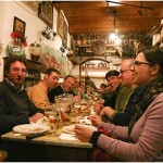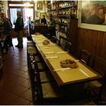 This evening the bar was filled to bursting with a long table taking up most of the available space as twenty lucky customers sat down to eat one of the local delicacies – baccalà – dried cod. Most baccalà dishes require that the fish be soaked numerous times to remove excess saltiness and who better to prepare this tasty dish than Natale Bertolini famed in the area for his prowess at roasting chestnuts (article here) and preparing other local dishes in the traditional manner drawing upon his many years of experience. (article about Natale’s 80th birthday here)