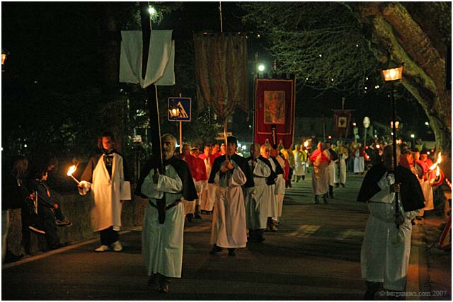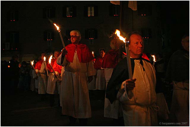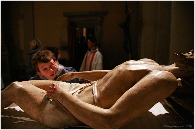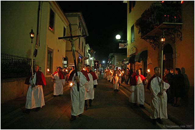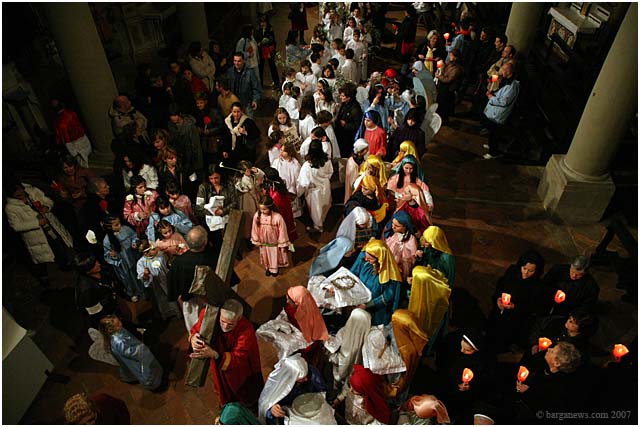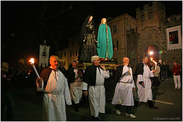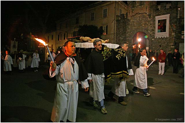 Held only once every five years, the procession winds through the candle lit streets of Barga with the confraternities of each of the churches proudly bearing their ancient banners and a statue of a dead Christ which is taken around the city up to Il Fosso just outside the city walls and then back once more to the SS.Crociffisso church.