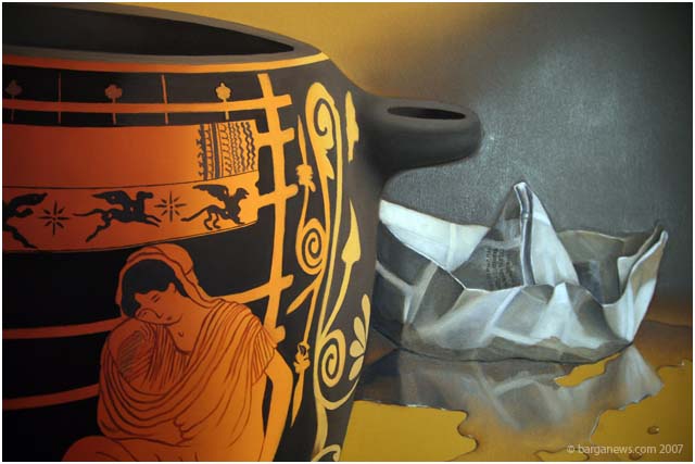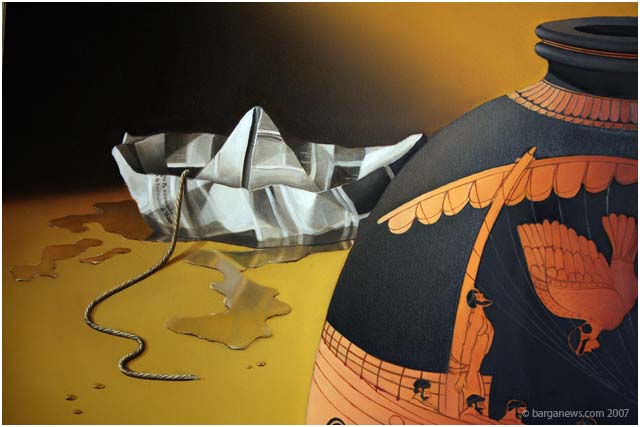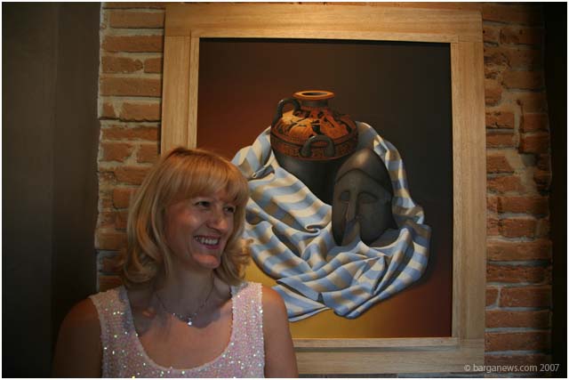 Roberta Rossi -Alla nobile tradizione disegnativa della sua terra d’origine, la Toscana, possiamo far risalire l’esigente equilibrata sintesi della forma e il nitido impianto strutturale delle tele. I suoi oli sono sempre frutto di un’attenta elaborazione critica e strumentale, ricchi di significati allegorici e con una texture di armonica compatta fluidità. Ciascun lavoro costituisce per l’artista una realtà irripetibile e compiuta; perciò queste opere sono sempre pezzi unici. In una delle più attuali fasi della sua ricerca espressiva compare in ruoli diversi il motivo delle “Isole sospese”. Lontana eredità di ricorrenti sogni infantili, tali “isole” divengono, nella poetica della pittrice, affascinante piattaforma di aspirazioni, di allegorie e di misteriosi simbolici racconti lucidamente scritti con l’appassionata conduzione di una splendente cromia. Altrove, si evidenziano espressioni di sapore metamorfico. Le ritroviamo in lavori dove l’identità fisica degli elementi costitutivi si moltiplica in un mutevole “gioco delle parti” intorno al supporto di una tela virtuale, in cui si aprono varchi rivelanti il paesaggio esterno ad essa. Attraverso questa proposta tematica ed estetica possiamo riconoscere il riproporsi, in chiave diversa, delle “isole sospese”, sedimentate nella memoria onirica dell’artista. Ines Formiggini Pessina