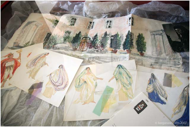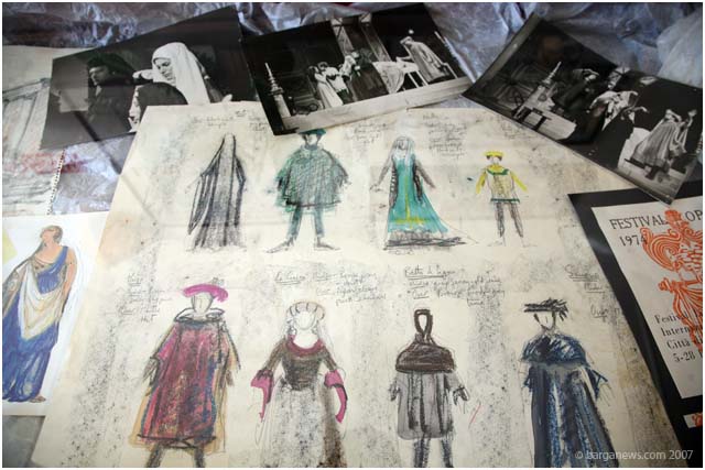 Nella mostra erano esposti anche i bozzetti originali per scene e costumi realizzati da Gillian Hunt, fondatrice del festival insieme al marito Peter.