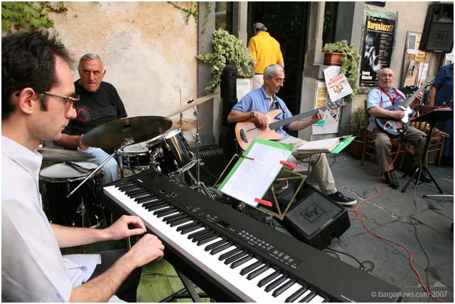 Barga in Jazz 2007 kicked off today with live jazz bands playing in most of the piazzas in Barga Vecchia, a New Orleans style band playing as they strolled through the streets and even a jazz duo playing inside the Duomo.