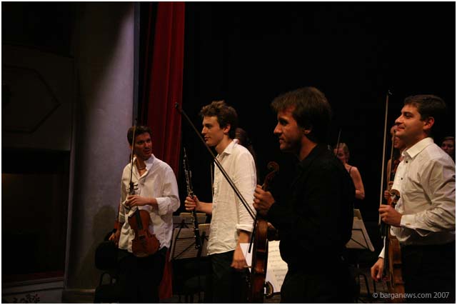 These concerts will take place not just in Barga, but also in the twinned medieval villages of Bagnone, near the sea in the province of Massa Carrara, and in Cutigliano , a small mountain village in the province of Pistoia. This evening it was the turn of Vivaldi and Mozart – a concert in the Teatro dei Differenti by the Ensemble le Musiche with Simone Bernardini , Carrie Dennis, Virginie Reibel and Victor Aviat. Also in the Ensemble was guest obe player – William Morriconi from Barga