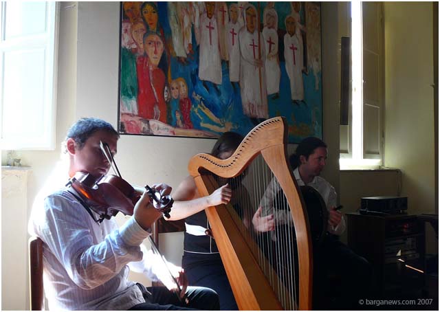 Once more Barga Vecchia was alive with the sound of traditional Irish music (two Irish Musicians married in Barga earlier this week- article here) – this time the music was played on the bodhran, fiddle and harp by Neill Lyons, his brother Barry and sister Helen.