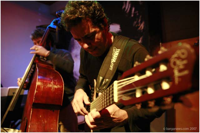 A classic dark autumn evening in Barga Vecchia with deserted wet streets and piazzas but in the Barga Jazz Club the atmosphere was anything but damp and miserable. In fact, wonders will never cease, the place was positively jumping to an almost tropical beat. A Latin American flavour was running through the music this evening, as some of the musicians from a new musical project called "Tropical Mood" played a number of their more summery numbers.