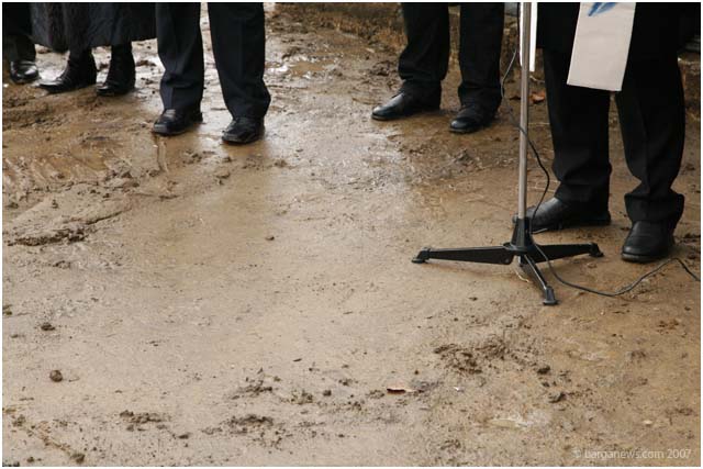 Many peoples minds this morning were fixed on the future, maybe thinking if they too would still be around on this earth when the new tree was large enough to need 4 people holding hands to encircle the tree Their minds might have been on the future but their eyes were firmly fixed on the present as probably the overriding image for many people present at the event this morning will have been the sea of mud on the Fosso with just the solitary tree standing alone in the middle with only a lone photographer and cameraman from the local TV station brave enough to wade out in the sticky mud to get their shots.