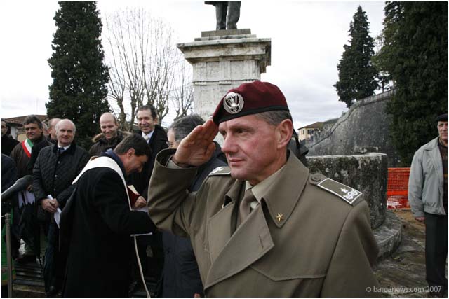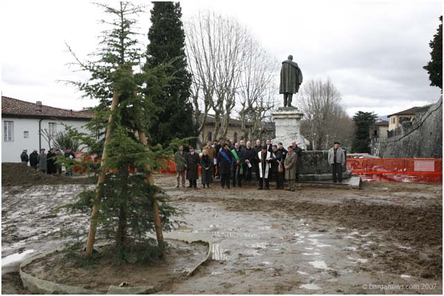 Generale Maurizio Fioravanti and other representatives from the Brigata Folgore in Libano were in Barga this morning for the official handing over and blessing of the new Lebanese Cedar which has been planted on the Fosso to replace the centuries old tree which was cut down earlier this year as it finally had reached the end its long life.