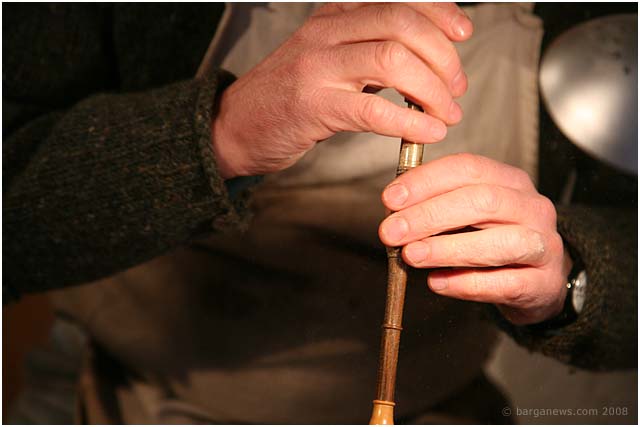 The third article from Hamish Moore – acknowledged as the premier small pipes bagpipe maker in Scotland now working in Barga as artist in residence 2008 – Twas on the Monday morning and I had put in a good three hour shift at the lathe and was just thinking about stopping for some lunch when an astonishment of scarlet clad beings came streaming across and completely filling Piazza Angelio. I peered out of my door in amazement ; it was almost as if a flock of human scarlet ibis were coming in to roost from the North East coast of Venezuela to the Caroni swamp in Trinidad in The West Indies. But these were of the genus and species, homo and sapiens respectively ——– but there was tartan in amongst it too – and lots of it. The males of the species wore woollen garments coming as far as their knees while the females had the benefit of total leg cover on this bright but sharply cold alpine type morning.