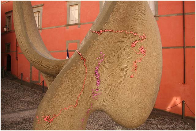 Five days after all was cleared up the coloured marks from the very strong oil based pigment used in the spray can still be seen over some of Barga Vecchia. Residents are now waiting, with some anxiety, for rain to fall on the city to see if nature can deal with this problem. If that does not do the trick then a task force armed with steam cleaners has already been organised by the Lake Angels. Let's hope this will not be necessary. One thing is for sure though – this will be the last time you will see those particular sprays being used inside the castle.