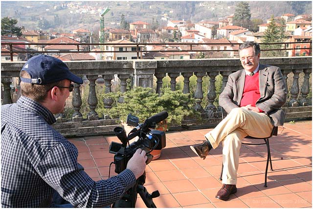 A film is in production at the moment covering a year in the life of the painter John Bellany. In charge of production is John's son – Paul Bellany who is carving out a career for himself in moving images. Before joining the National Film and Television School in London, England, Paul was head of the creative department of an international event company, overseeing video, 2D, 3D, animation and print. Paul studied Visual Communications at Cambridge and Graphic Design at Chelsea. Recent projects include Channel 4's Challenger documentary and, while at The Mill, Paul worked on a high production value Visa advert for the American Superbowl. He was here in in Barga this week interviewing and filming the Mayor of Barga and various locations around Barga for inclusion in the film. Filming should be completed within the next six months. His site can be seen here