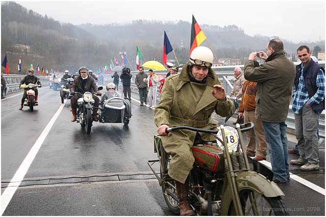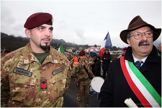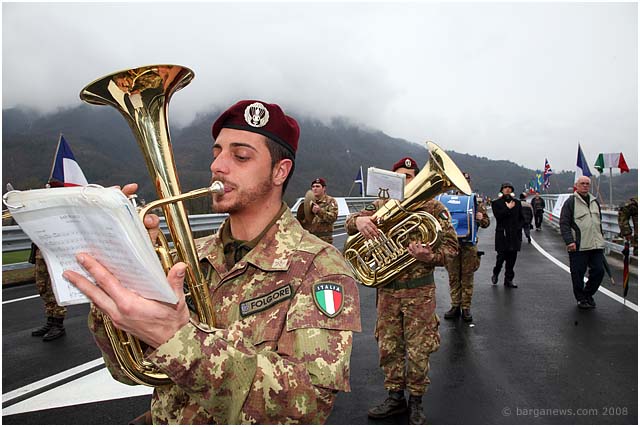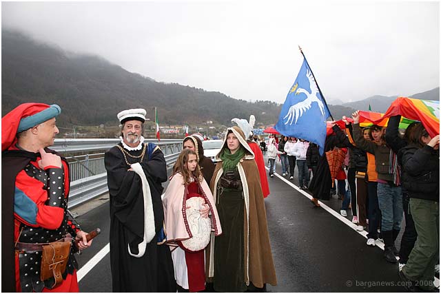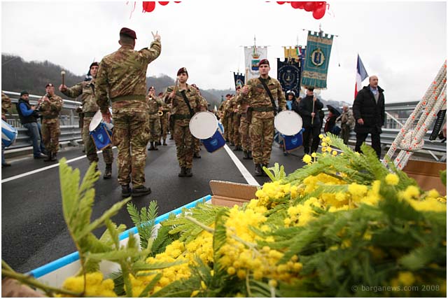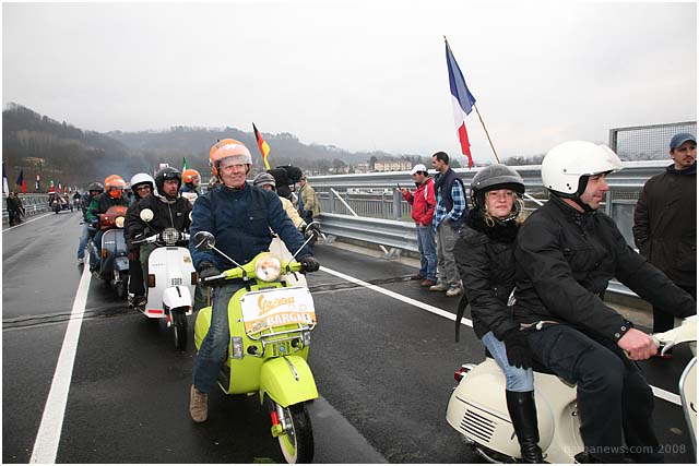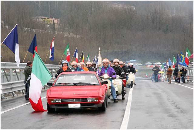 A new road bridge from Fornaci di Barga to Gallicano was opened this morning to the sound of cannon salutes, marchings bands, the deep rumble of Ferrari engines, the roar of vintage motorbikes and the “put put” sound of the massed ranks of the Barga Vespa Club as they crossed over the bridge for the first time. The project for the bridge was first mapped out over 30 years ago but only became a more “concrete reality” in the past 2 years -- the time that it took the Cavani – Comoter di Piano di Coreglia to build the 500 metre long bridge across the river Serchio.