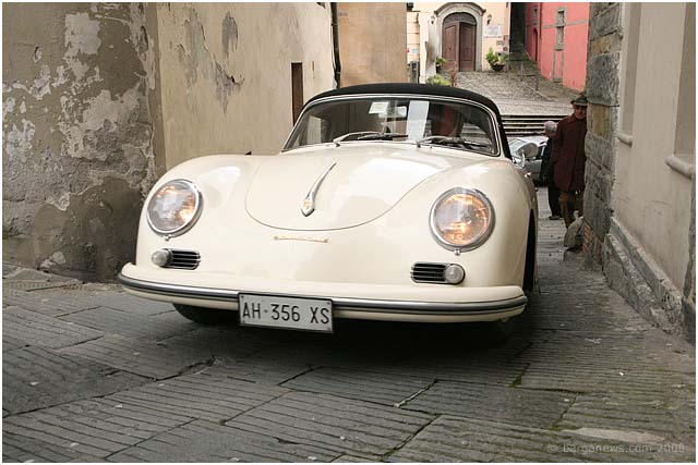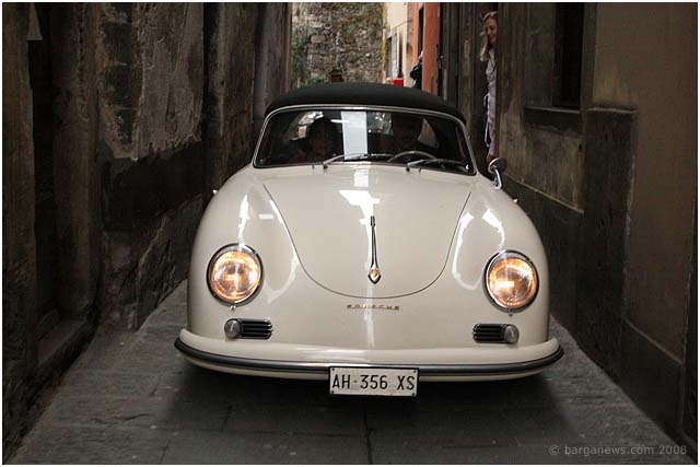 A meeting by the Porsche Club – Registro Italiano Porsche 356 brought 32 Porsche into Barga … a dozen brave and able drivers even managed to get their precious 1950’s and 1960’s Porsche’s in the main gate and through the narrow streets to Piazza Angelio in Barga Vecchia. Click on the link at the bottom of this article to hear Gabriele Giovannetti Assessore Rapporti con il Cittadino – Partecipazione e coordinamento attività sportive e del tempo libero explain (in Italiano) some of the background details to this event