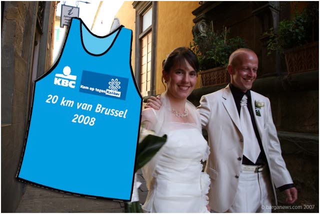 Massimo Gonnella and Anna Schidt married here in Barga last summer. There is an article with images and a short interview with the couple just as they came out at the Palazzo Pancrazi here. Unfortunately Massimo was suffering from cancer and he died just five months later on the 19th of December 2007. What was notable at that wedding was the large amount of guests – over 100, who arrived from right across Europe, many coming from Brussels where Massimo and Anna lived. Some of those guests will be taking part next month in a sponsored 20 km race in Brussels in memory of their friend Massimo, who was a keen runner with the proceeds going towards cancer research. There is a website specially set up for this event, called Run for Massi which can be found at the www.runformassi.be So far they have already reached a figure of over euro 16000 pledged in aid of Cancer Research. The 20 km run will be on 25th May 2008