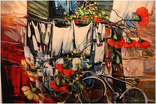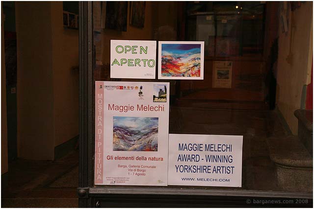 Coming back up the hill and into Barga Vecchia we find an exhibition of paintings by one of the new British painters – Maggie Melechi from Yorkshire, England.