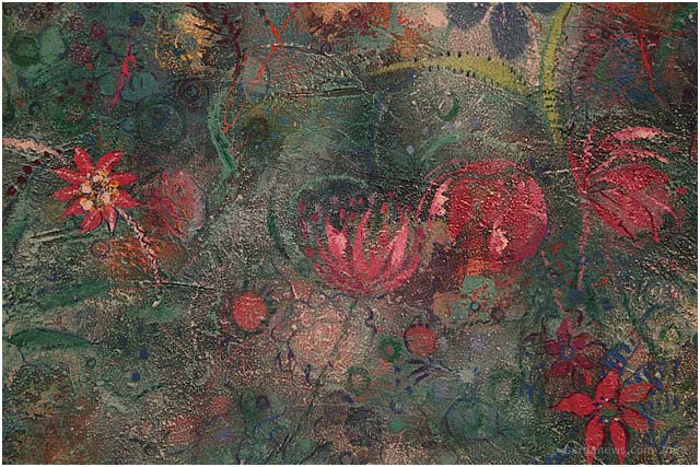 Recent works continue her exploration of colour, texture and mark making on a variety of scales. Her subject often alludes to the landscape, seascape and aspects of nature i.e. grottoes, volcanic and mountainous terrains, plants and flowers. Her inspiration is drawn from her travels in Southern Italy, Sicily and the contrasting Yorkshire landscape especially the North York Moors. Photography is also an important source of reference – her camera being her sketchbook – site here