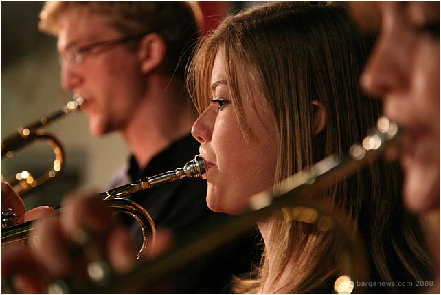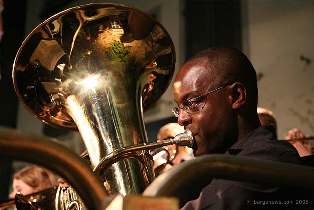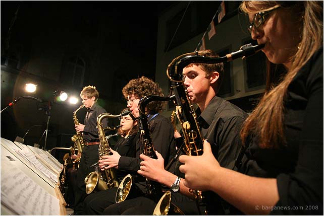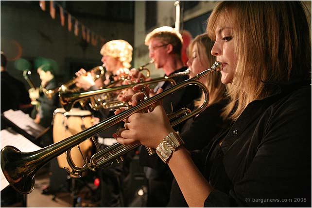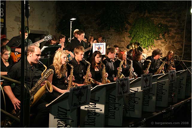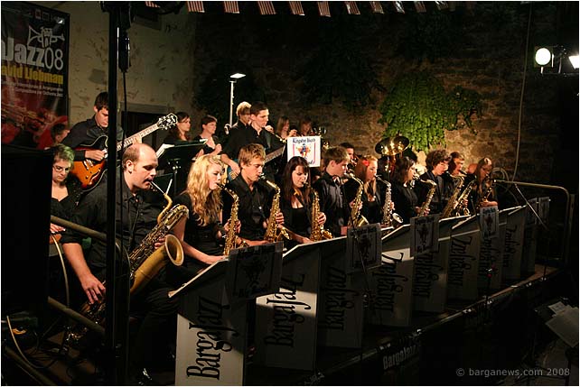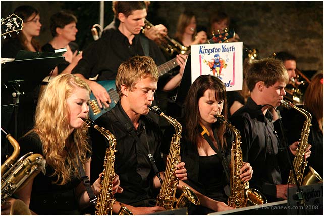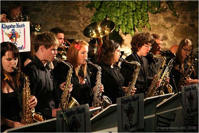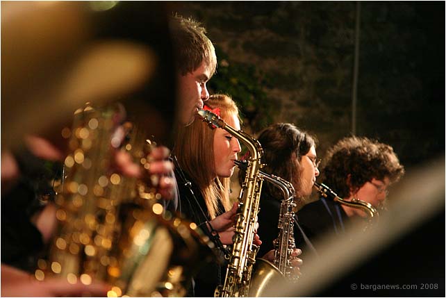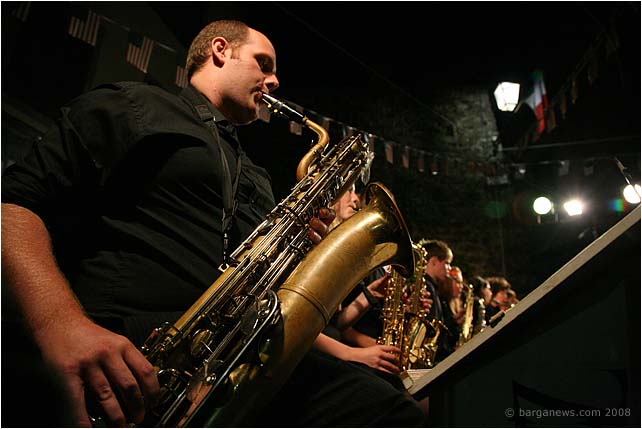 The Barga Jazz Festival 2008 officially starts on Sunday but there have been a couple of Jazz events this weekend to “wet the palate” so to speak. Riccardo Arrighini yesterday in the Villa Moorings with his jazz music based around some of the arias from Puccini – (article here) and this evening in Piazza Angelio – the Kingston Youth Big Band from England.