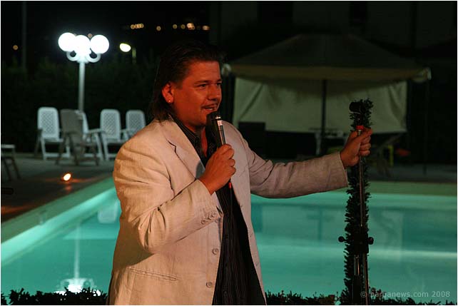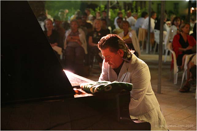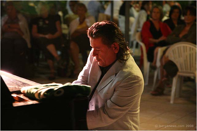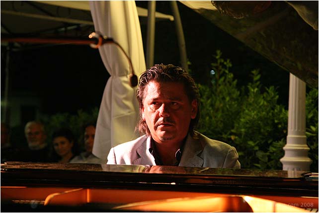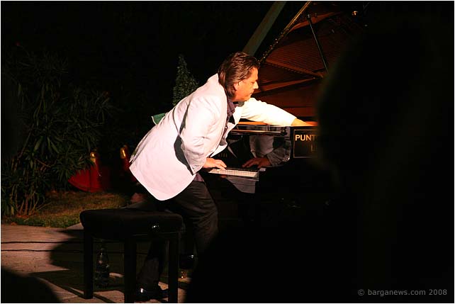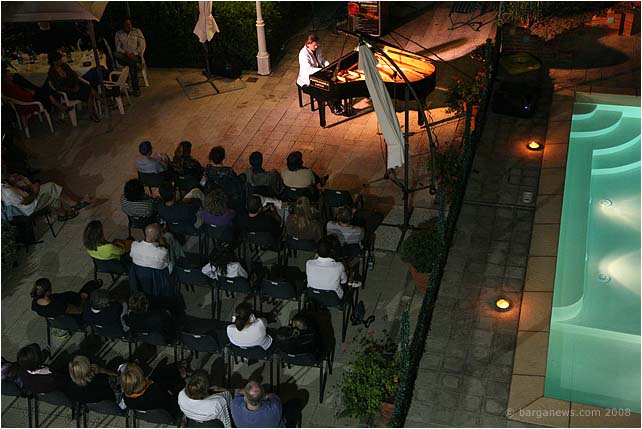 Full house at the Hotel Villa Moorings this evening as Riccardo Arrighini played a selection from his latest series of works based around the music of Giacomo Puccini. A perfect evenings entertainment sitting round the pool watching the stars overhead and listening to the notes floating out from piano of Riccardo. The Barga Jazz Festival 2008 is off and running in style.