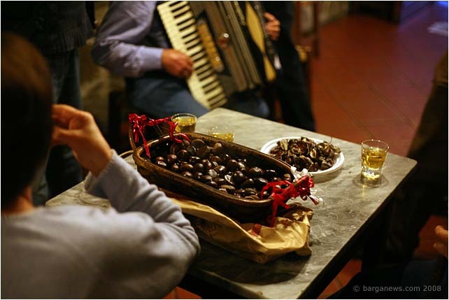 This afternoon one of the great characters of Barga Vecchia, Natale Bertolini (article here) who is famous for his chestnut roasting technique (article here) turned up at Aristodemo’s bar with a basket full of still steaming freshly boiled ballotte.