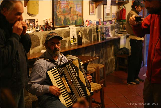 Within minutes the party was on, the red wine was flowing and all helped along, as usual, by the accordion playing of Giuliano