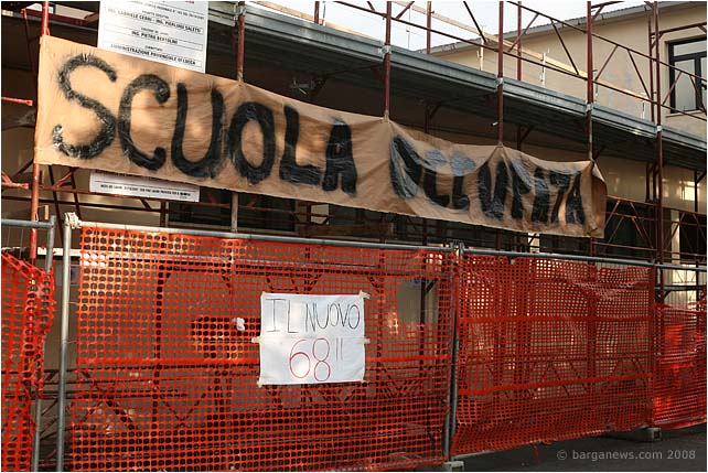 The growing wave of student protests that has been moving through the whole province finally this week burst onto the Barga schools. The Scuola Superiore were taken over taken over early this morning by the student body who unfurled banners proclaiming that the school was now occupied and was under their control.
