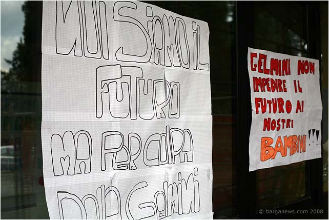 According to the spokesman who spoke on behalf of the students inside the occupied school, if the Gelmini programme is not defeated, it will mean the sacking of 80,000 teachers and 43,000 non-teaching staff such as secretaries and technicians.