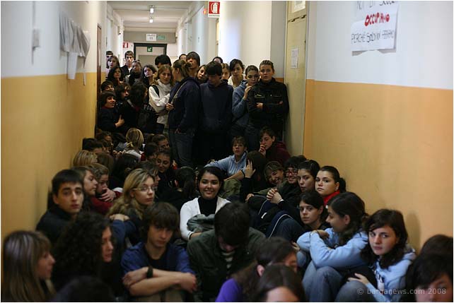 The occupation of the Scuola Superiore in Barga by students protesting against the “Gelmini reforms” moved into the second day. The 24 hour a day occupation is part of the growing wave of protests against cuts and reforms imposed by Berlusconi’s young education minister, Mariastella Gelmini. Critics argue they will set back the clock 30 years or more in schools.