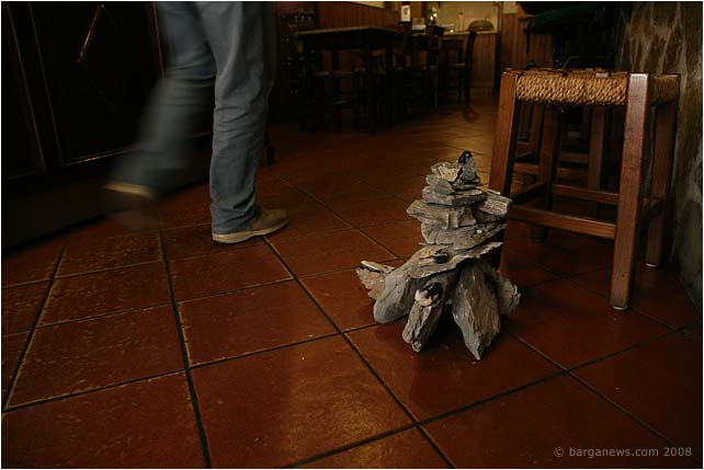 Keane’s path did not finish on the mountain but continued down into the valley with the final stack of stones appearing miraculously in the middle of Aristo’s bar in Barga Vecchia. (images here)
