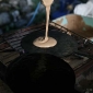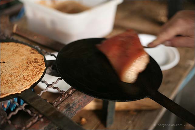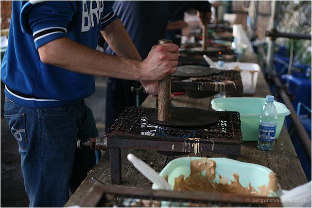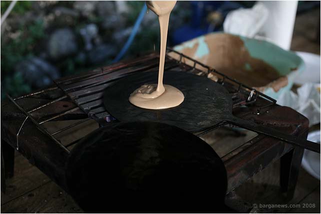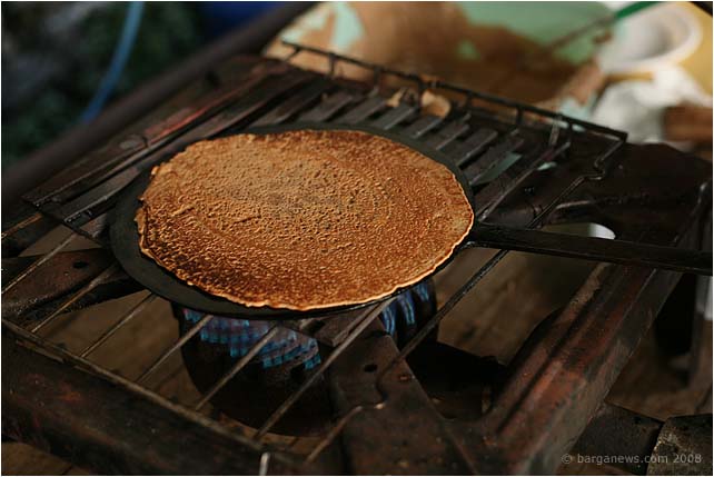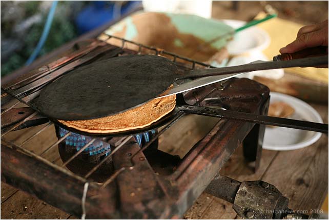 A stick to press down on the top plate and in seconds you have one of the tastiest foods in this area.