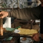 Two metal plates, the testi or cotte, are oiled and heated and the chestnut paste is poured onto one of the plates, the other is placed over the top so that the necci can be cooked from both sides.