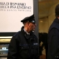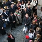 The shiny new cashpoint machine was opened to the public this morning with the blessing of the Provost of Barga don Stefano, the sound of the brass band from nearby Fosciandora and the voices of the Santa Lucia choir from Gallivare, Sweden who are here in Barga for a concert later on this evening in the Duomo.