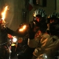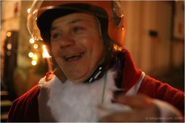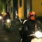Just on a side note, any idea how it is possible to hold a burning torch in one hand and still control a bike or vespa through the narrow streets ? The obvious answer was to have the pillion passenger holding the torch but from a single riders some creative answers to this problem were seen during the evening. They included attaching the torch to the helmet, taping it to a backpack, to the bike itself and one person was seeing with a flaming torch gaffer taped onto his shoulder. Nothing like living dangerously is there ? All proceeds will go to charity.