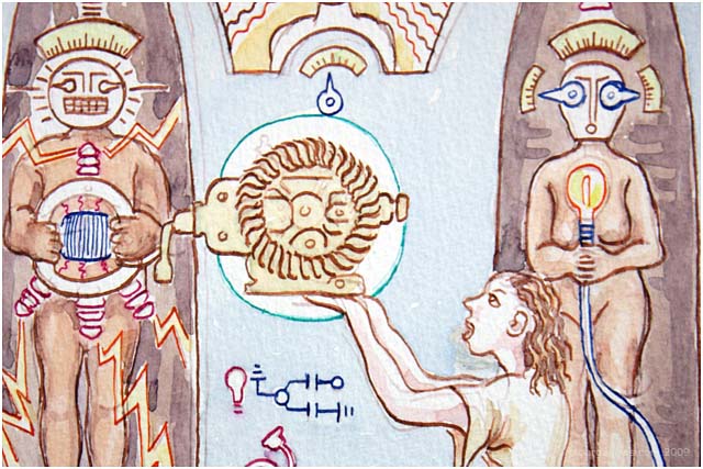 Details from some of his latest imagesThe drawings on show today will shortly be exhibited in Liverpool, England at the University Victoria Gallery and Museum with their collection of electrical objects from the early 20th century.
