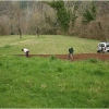 The third in a series of articles about the progress of the barganews vegetable garden.The compost was spread last week. Now it was time to start preparing the ground. These fields have been lying fallow for many, many years so first of all they had to be dug down to 40cms. This could have been the seriously heavy part of the operation but was luckily lightened up by the help of a local farmer who brought out his magnificent 80 year old tractor and ploughed the top field in record time. Phew, that was close! A LOT of spade work was saved there. The field was then rotovated and 25 lilos of small potatoes seeded and covered by hand.