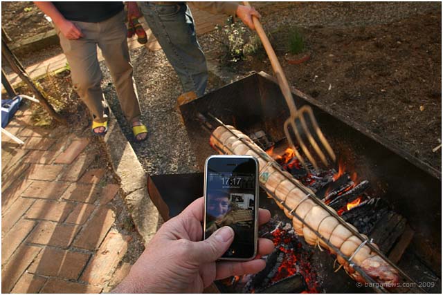 The very succesful bed and breakfast establishment Casa Fontana run by Ron and Susi Gauld in Barga Vecchia opens its door this weekend after the short winter layoff. To celebrate the start of the season they held a party in the gardens of the house for many of their friends here in Barga. Ron and Susie decided to celebrate the start of spring with a traditional pig roast. The roasting over a wood fire took three hours with some sophisticated equipment turning the pig at a constant speed. Luckily there were many experts on hand to give advice and consultation on all subjects pertaining to pig roasting from the time needed, the type of wood needed and type of fire. A precisely 8.30 pm the pig was pronounced cooked and the party began in earnest. Amongst the guests were spotted many members of the Lake Angels – they too know something about pigs and pig roasts.