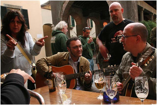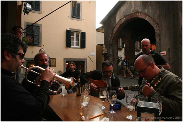 Torrential rain has once again stopped most of the outside activities in Barga today. So instead some images from yesterday to keep our spirits up. Liberation Day – the 25th April and a national festa in Italy. At Aristo’s bar in Barga Vecchia the party was in full swing. As you can see from the faces of the musicians, Aristodemo was in fine form. Dare we run a caption contest for the image on the left ? Click on it open and then maybe use the comments section at the bottom of this article – feel free to indulge … but please, keep it civil.