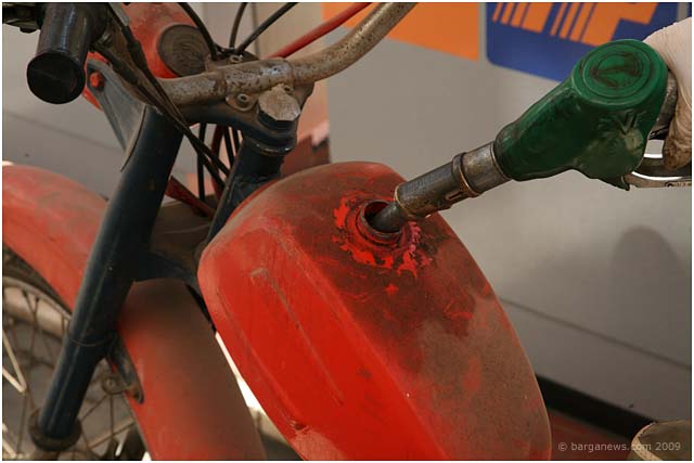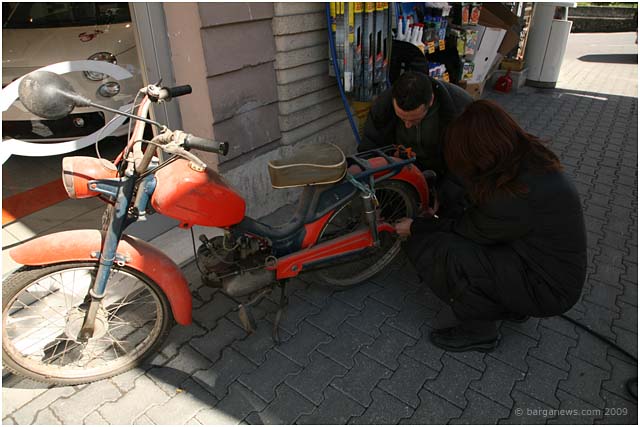 I pushed it down to the petrol station in Barga Giardino to pump up the by now very flat tires and put some petrol into the tank. After only a couple of tries, would you believe that it started ?