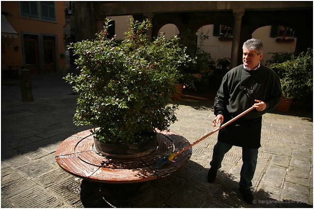 To celebrate the spring sun reaching the piazza outside of the Palazzo Pancrazi, the inhabitants of that area of Barga Vecchia did a bit of spring cleaning in the piazza.