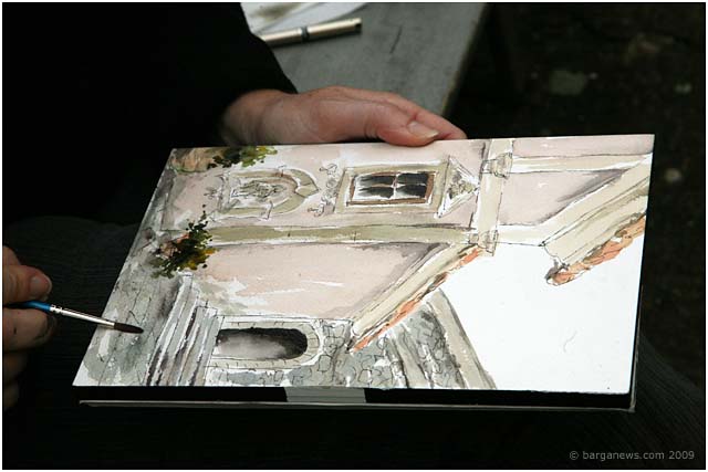 I woke up this morning with so many paintings in my head, I just couldn’t wait to gather up my sketch book and watercolours and head out to quickly chronicle as much information on paper and canvas as my fast little hands would allow. I will try to capture the flavour of each place I sketch and upon my return home, transfer the feeling to larger pieces. The problem is that everywhere I look, I see another painting. There will not be enough time, of that I am sure.