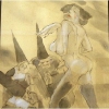 One that almost got away – an exhibition of graphic work from the pen, brush and agile mind of Maurizio Fontanello is now on at the Galleria Comunale in Barga Vecchia. Very little publicity on the streets for this event and as the artist has to come from Livorno to open the gallery it has not been open every day but it is well worth the effort in trying to see these drawings and paintings “in the flesh” so to speak. His is a strange mix of styles and iconography with more than just a hint of the aquatint prints from Francisco Goya know as “Los Caprichos” showing through in many of the works on show in this exhibition. Add to that just a hint of German Expressionism and a healthy dose of dark humour and you start to get something of the tone and pitch of these works.