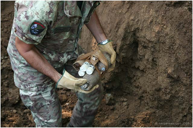 Click on the link below to hear the voice (in English) of Lorenzo Forno as he waited for the Caribinieri to arrive at his house to defuse the hand grenade followed by a short interview (in Italiano) with the officer in charge of blowing up the device three weeks later.