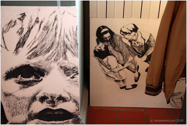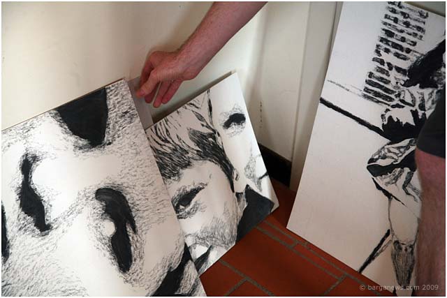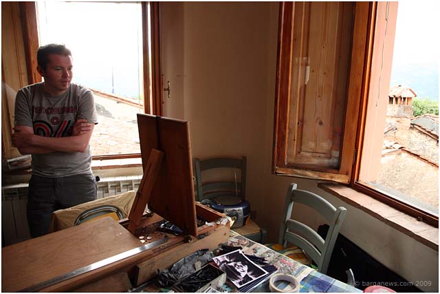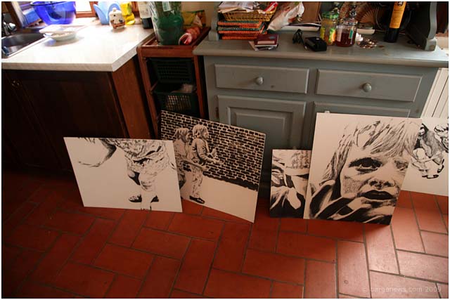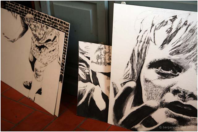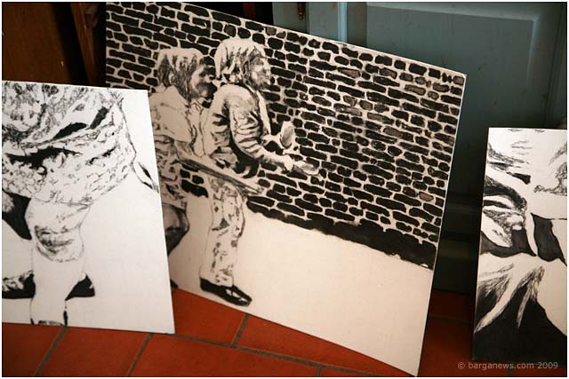 The Irish artist Lorcan Vallely has been working in Barga over the past couple of weeks preparing charcoal drawings on canvas boards for an exhibition of his work to be seen later on this summer in Ireland. The canvases, all featuring images from 1970’s documentary footage showing children at play in Belfast, will be shown at the Gormleys galleries in Belfast and Dublin.