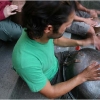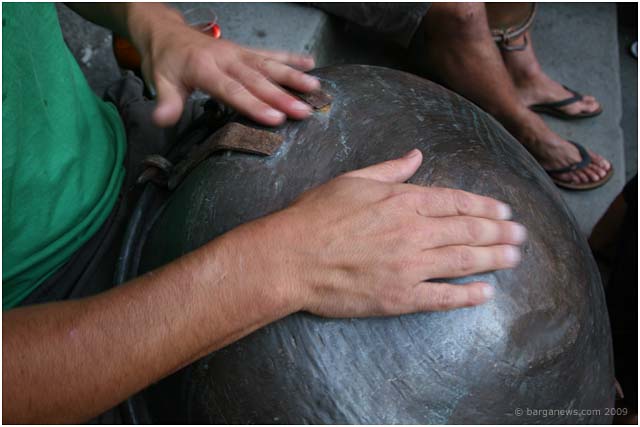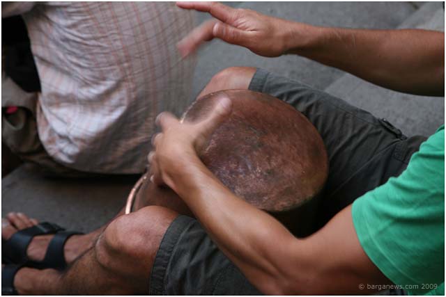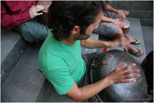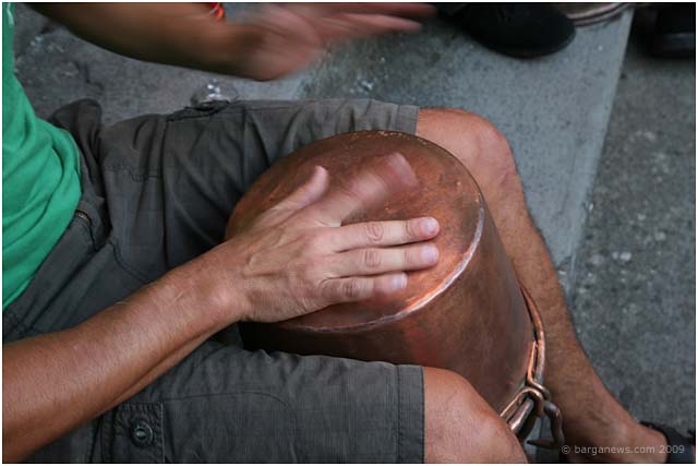 The third evening of the 10 day Piazzette Festa in Barga and people are already starting to wilt a bit at the edges. It’s a hard old life. For some of the audience waiting on the steps of Piazza Angelio for the live concert to start this evening, the wait just became too long … and so they took matters into their own hands and started to make their own music. A guitar was pulled out and people started to sing but what was missing was the rhythm section. That too was easily sorted out when some of the antique paioli copper pots that were sitting outside the Galleria Marzocco were pressed into service. Within minutes the piazza was filling with the sound of beaten copper being beaten just a little bit more and decidedly in time.