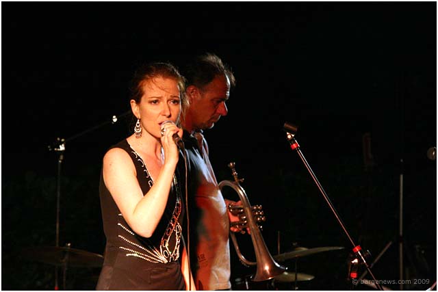 “Viaggio Musicale alla scoperta dalla Garfagnana e della Provincia di Lucca” – “a musical voyage of discovery in Garfagnana and the Province of Lucca”. The Tournaround continued its route across the area this evening with The Michela Lombardi and Marco Bartalini Quintet. Michela Lombardi – voce, Marco Bartalini – tromba/flicorno. Piero Frassi – pianoforte, Filippo Pedol – contabbasso, Piero Borri – batteria . Marco Bartalini has been a regular performer in Barga for many years – at both at the Barga Jazz Club 2004 and 2006 and as a member of the Barga Jazz Orchestra. What can we say about Michela Lombardi ? How about – Elegant, delicate, intense. Michela Lombardi’s approach to jazz vocals refers deeply to a clean, refined, slightly vintage sound (think of Irene Kral, Carol Sloane, Anita O’Day, Gelen Merrill) which draws close a legacy of contemporary young artists with a similar poetic attitude like Karrin Allyson, Tierney Sutton, Stacey Kent, Jackie Allen, Sara Lazarus, Roberta Gambarini.
