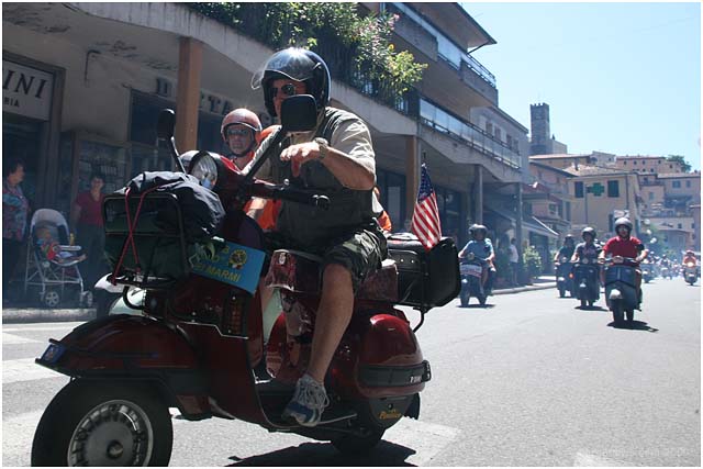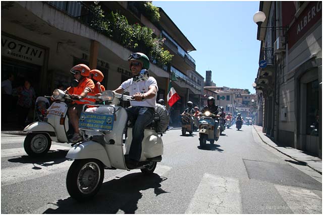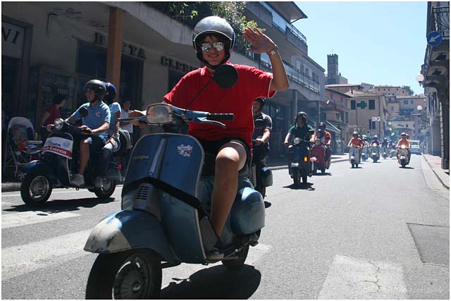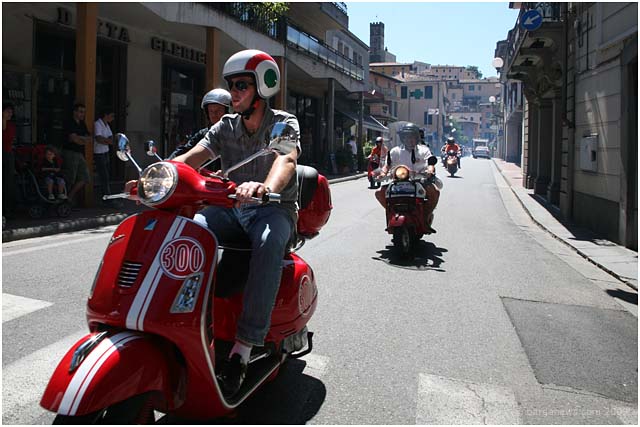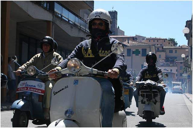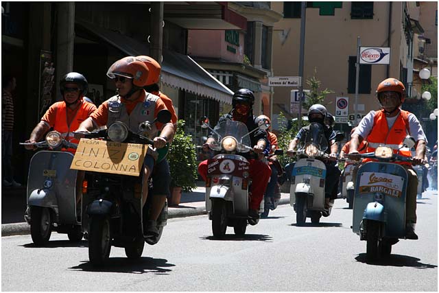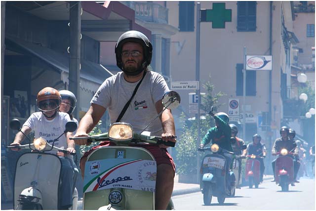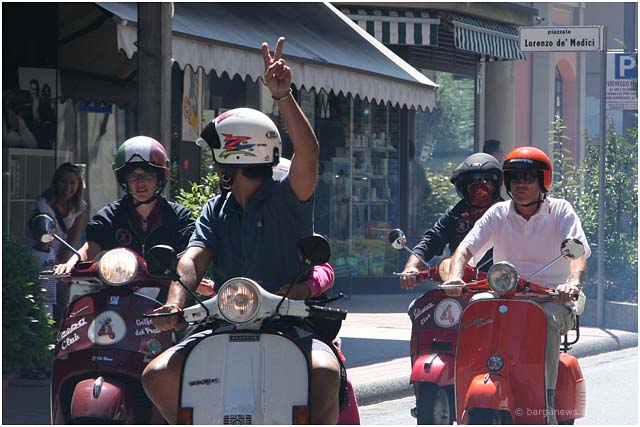 In 2007 the Barga Vespa Club was created by a group of Vespa enthusiasts in this area. Within weeks they had membership figures running into the hundreds. They have been organising events for their members ever since. Runs, outings, special events, dinners and meetings. Today it was the turn of the 2nd Inter-regional vespa rally “Città di Barga” which was held in and around Barga. Once again well over one hundred vespa’s on the road – 140 to be precise with the furthest coming from the Verona Vespa Club. At lunchtime they called into La Trebbiatura at San Pietro in Campo where prizes were awarded before they all roared back off into the distance ready for the next event later on this summer.