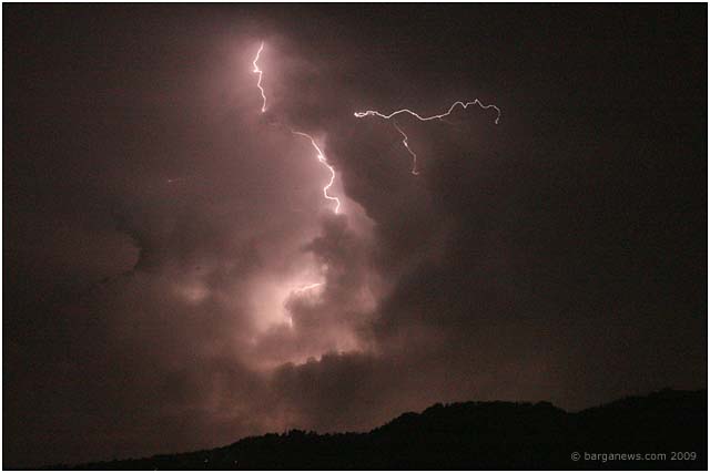 Just one look at the front page of barganews is enough to show quite graphically just how much Barga is immersed in jazz this week but one story that almost got lost in all of the excitement of the Barga Jazz Festival really does deserve its own article. On the evening of the 22nd whilst the Rossano Emili Ensemble were entertaining the crowds in Piazza Angelio there was another spectacle taking place behind and above them. From the Piazza all that could be seen was the occasional flash of light in the sky but for many people in the valley they were treated to an electrical storm the likes of which many people have never seen before and all the more intriguing and unusual as it was as if the sound had been turned off. Huge flashes of lightning crisscrossing the sky with seemingly no breaks in between each jagged fork of lightning… in other words a more or less constant lightning show but with no accompanying thunder. It was completely silent. This was because it was not taking place in the mountains above Barga but in the mountains further north in Emilia-Romagna.