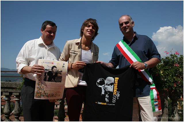 What should have been a short presentation this morning in Palazzo Pancrazi with Paolo Nutini and his parents in fact turned into a rather longer affair with what could be interesting possibilities for Barga. Paolo was there to be presented by the Mayor of Barga, Marco Bonini with plaque commemorating the fact that he was now putting the name Barga on the worlds music stage. During August Paolo generally spends at least one week on holiday here in Barga and has done so for many, many years – after today’s meetings that may change as it looks as though next year he may actually be working instead of relaxing for his Barga week. As you can hear in the short interview with Paolo at the bottom of this article, he mentions working with a jazz band in New Orleans and asked about the jazz musicians in Barga.