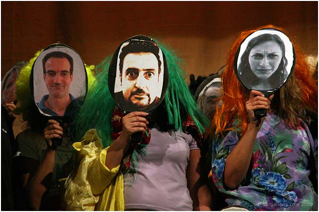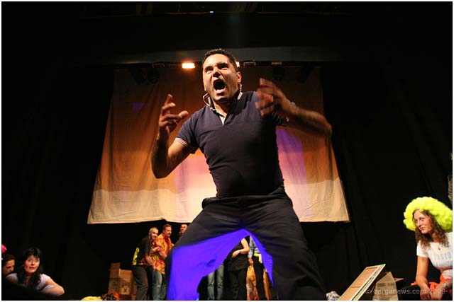 Once again the Director, Satyamo Hernandez and his crew used a series of techniques whereby both audience and actors were changed into Spect-actors.The term created by Augusto Boal, an innovative and influential Brazilian theatrical director, writer and politician. He used the term to describe those engaged in Forum Theater. It refers to the dual role of those involved in the process as both being spectator and actor, as they both observe and create dramatic meaning and action in any performance. The dividing line between audience and actors getting very blurred. The actors coming off the stage and into the audience and at the end even members of the audience joining them on stage.