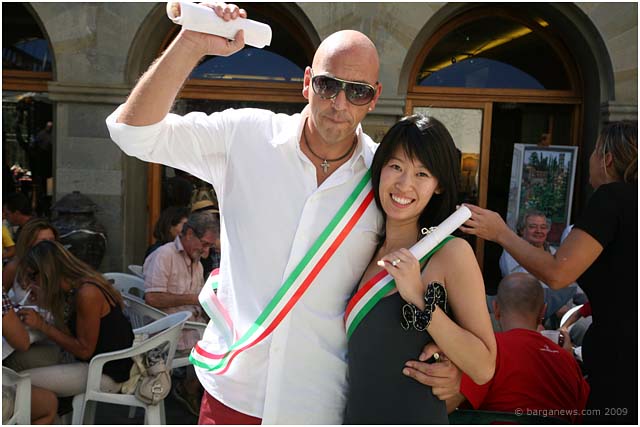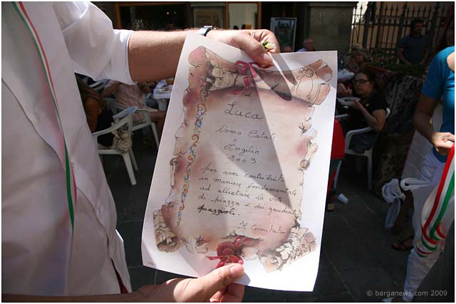 A very surprised Luca Galeotti – the director of Il Giornale di Barga, stood up to get his award as the man of the summer. Also getting to their feet was a very happy looking Sally Li, who took the woman of the summer award.