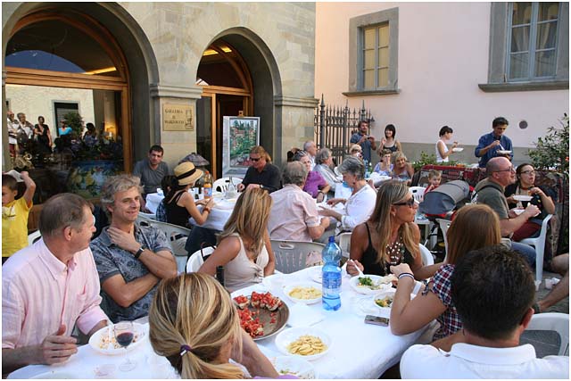 As quite often happens in Barga something that started off as a one-off event, very quickly turns into a tradition, especially if it has anything to do with food. Last year the local residents in and around Piazza Angelio in Barga Vecchia organised a meal of a polenta* in the Piazza. It was such a successful event with over 50 people sitting down and enjoying the autumn sunshine (article here ) that this morning it was repeated and this time on a slightly larger scale and instead of just one main dish people caught many dishes and brought them to share with their friends. To add to the occasion, a special presentation took place at the end of the meal to award to people who are according to the organisers were “The man and woman of the summer”