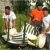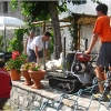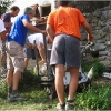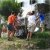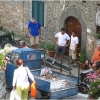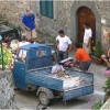 Angelo then handed the two lovers over into the capable hands (and unique machinery) of muratore Guido Guidi and his strong and able crew of men. It was placed with great difficulty on the front of a very small but incredibly sturdy and powerful tracked vehicle and thence it traversed up and down the tiny streets of Sommocolonia, through a large metal gate, along garden walls, up steep terraces, through a tall fence, across Nigel’s new terrace, and on to their final resting place in Nigel’s garden.