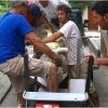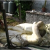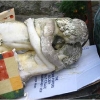 This morning the lorry drivers phoned Nigel to say they had left Lucca and were on their way to Barga. Nigel rushed to the Bar Onesti to await their call upon arrival in this area. When he contacted them by cellphone, it turned out they were stuck with their huge lorry on a Barga side street off the Via Roma in Barga. Nigel figured out where they were and rushed to their aid. Back on the Via Roma and taking all of the space between the trees, with Nigel leading the way in his car, they passed up through Barga and on to Ponte di Catanagna to the shop of the Angelo, the falegname there; and when Sommocolonia was pointed out to them far above, they realized they could go no further. There was no way to off load the statue there, so Angelo led them to Castelvecchio Pascoli where a parking lot made it possible to off load the very weighty statue of the two lovers onto the back of a much smaller vehicle, which Angelo owned. [The lorry, with its remaining cargo of one large automobile scheduled to be delivered to a man in Monaco, headed off down the valley, apparently none the worse for wear for the day’s experience.]